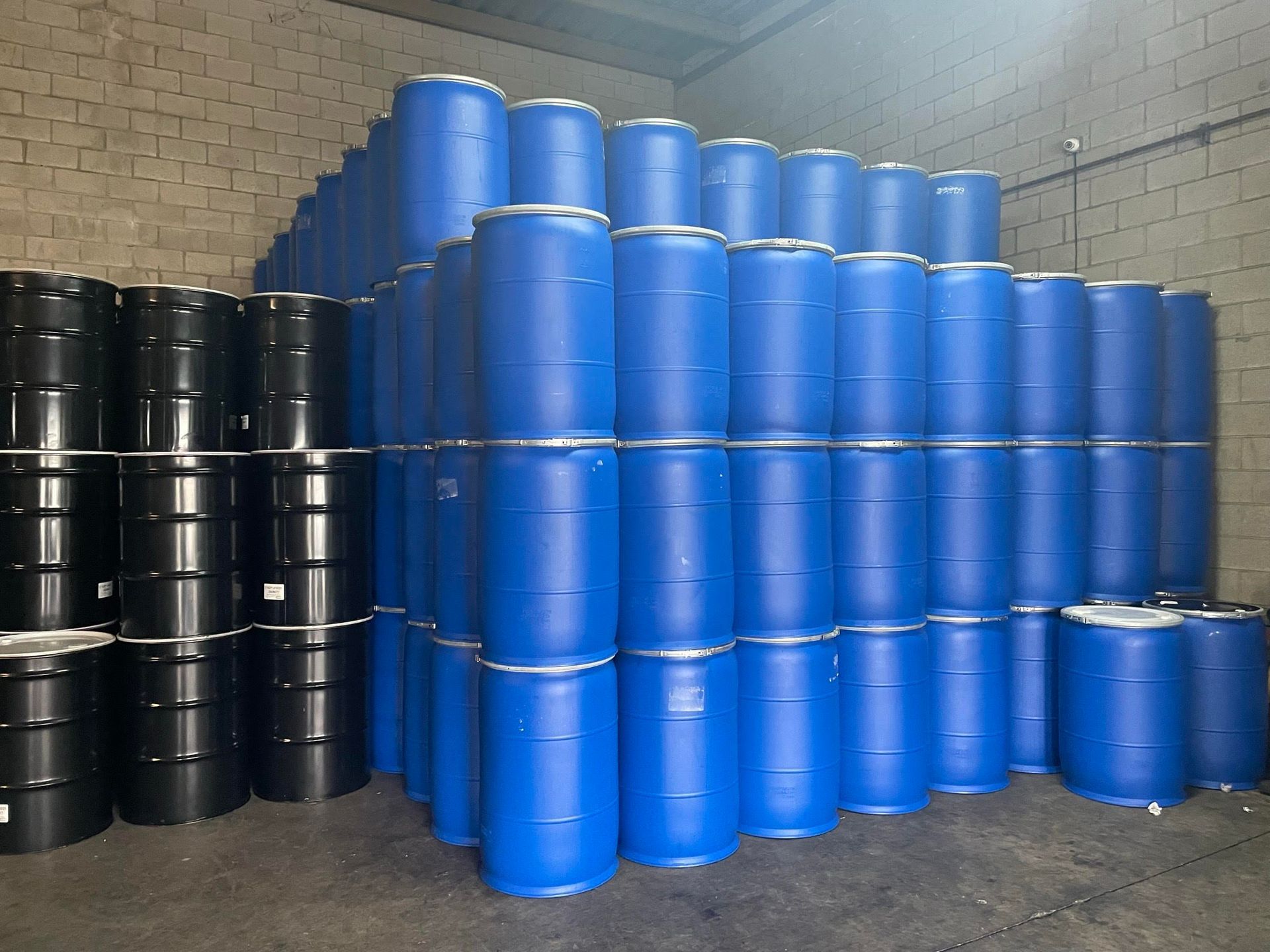 IBC totes (intermediate bulk containers), typically made of high-density polyethylene or steel, are used for storing and transporting liquids and other materials. They have a capacity of 275 to 330 gallons, and are designed with a pallet base for easy handling and stacking. Drums are made of steel or plastic, have a range of capacity, typically 55 gallons, and are commonly used for storing chemicals, food products, and other liquids.